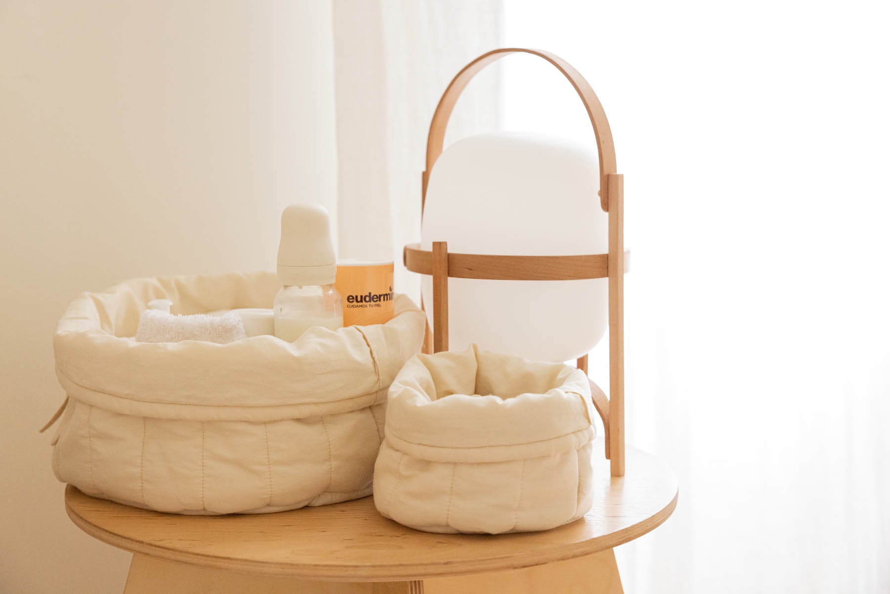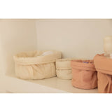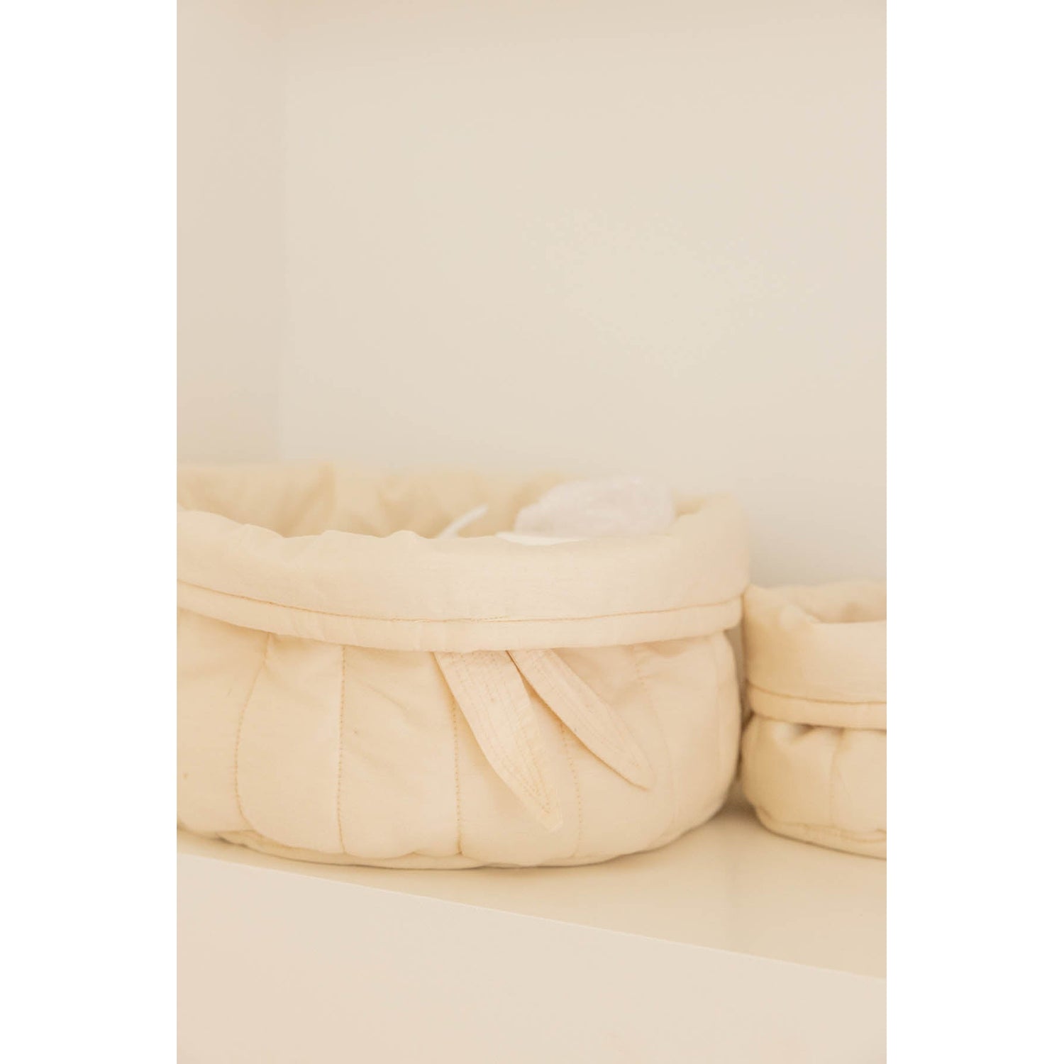 Crafted from soft organic cotton poplin, this set of two quilted baskets offers a gentle and stylish storage solution for nurseries, bedrooms, or playrooms. Lightly padded with GRS-certified polyester fill, these baskets maintain their structure while providing a cozy, fabric-first design that's safe for little hands.