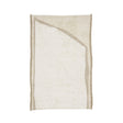 The design includes slightly irregular borders for a handcrafted touch, while the longer pile in the center creates a cozy, plush texture contrasted by shorter-pile edges for subtle depth. The handmade Sandstone-colored fringes along the sides add an artisanal finish that enhances its boho-chic aesthetic.