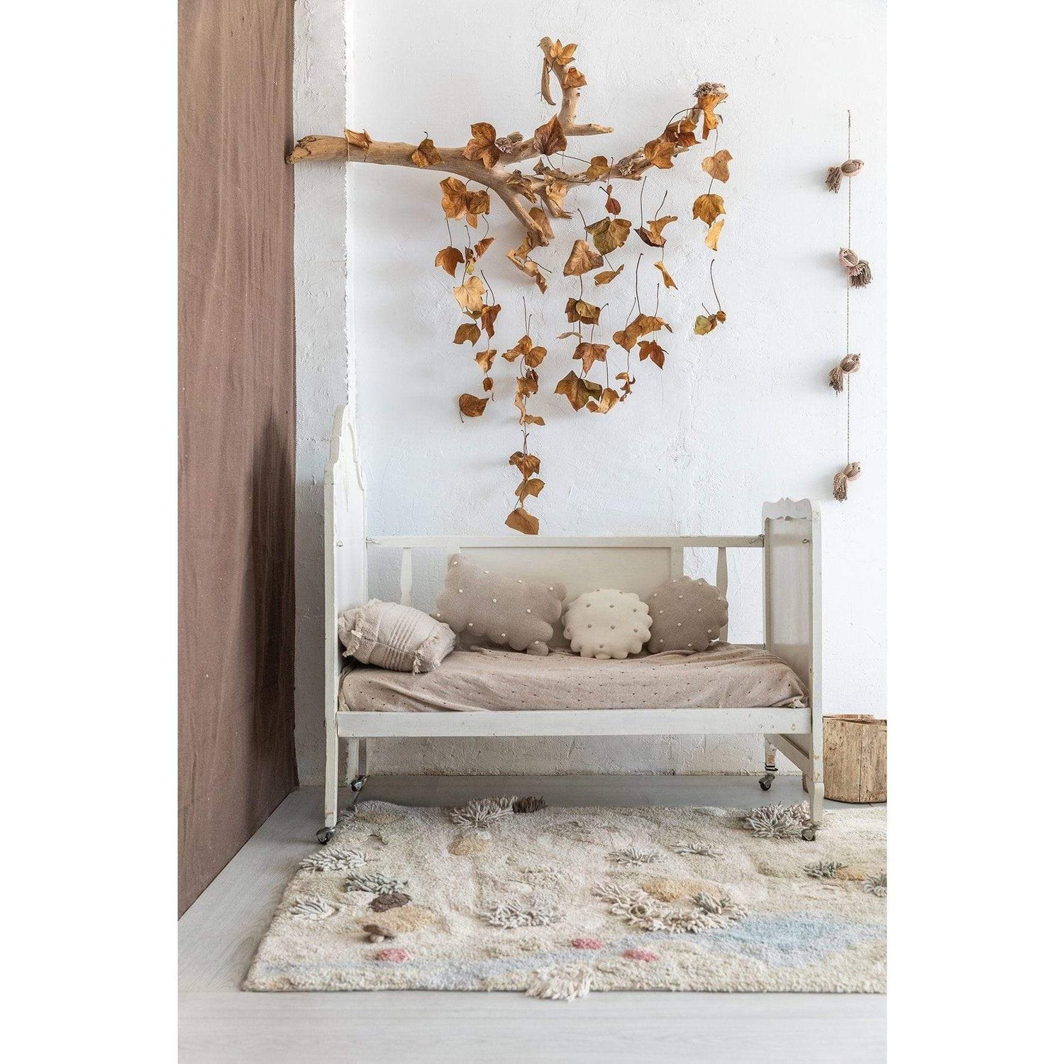 Designed with convenience in mind, this machine-washable cotton rug is crafted using natural fibers and non-toxic dyes, making it both eco-friendly and baby-safe. It also includes a small cotton horse cushion, encouraging imaginative play. Part of the Cotton Wood Collection, this rug transforms nurseries and playrooms into serene woodland escapes, combining sustainability, practicality, and timeless design.