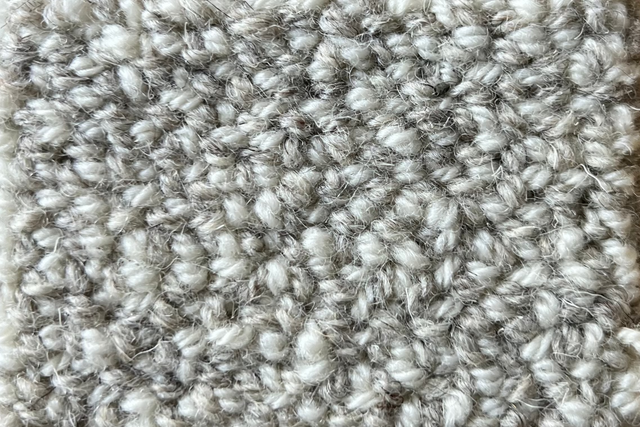 A two-tone loop pile uses a light and dark yarn blended to create a subtle, random grid-like pattern that adds depth and visual interest to the surface.