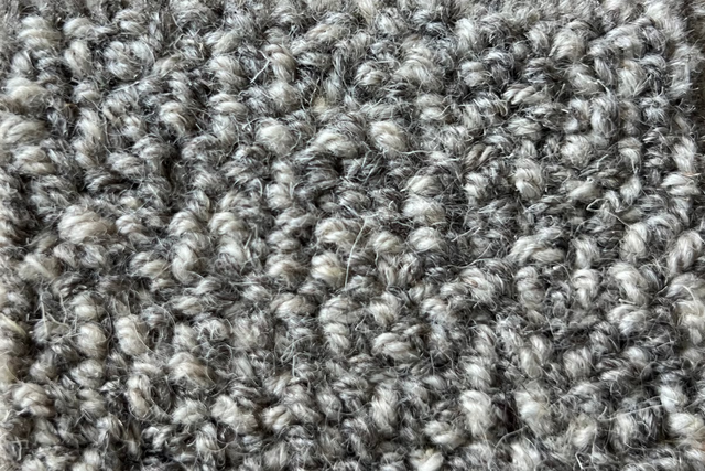 A two-tone loop pile uses a light and dark yarn blended to create a subtle, random grid-like pattern that adds depth and visual interest to the surface.