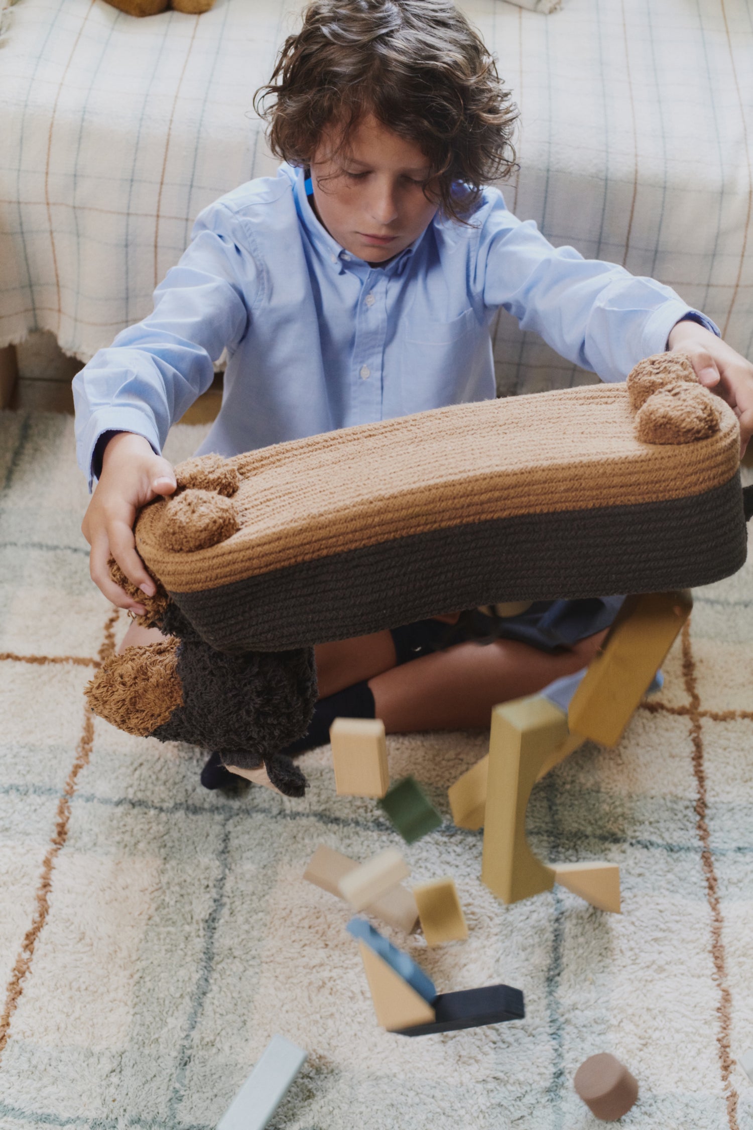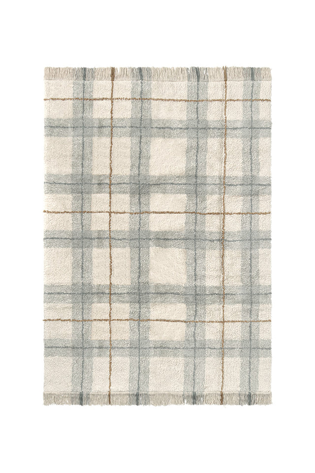 Dress your little one’s floor with a British tartan twist! This washable cotton rug recreates the classic look of woven tartan using a regular tufting technique. Featuring soft Blue Sage, Vintage Blue and Ochre tones, it’s finished with carefully placed fringes that add a cozy touch.