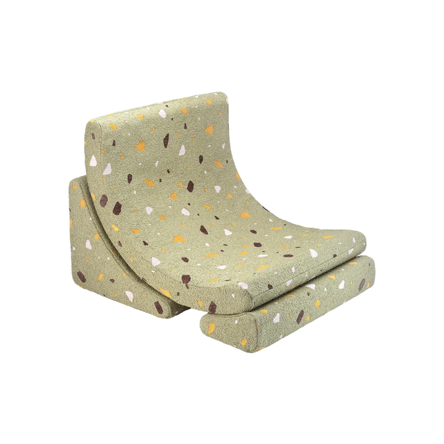 The Wigiwama Terrazzo Moss Moon Chair is the perfect blend of comfort and style, designed to make a statement in any room. This multifunctional piece is not just for sitting; it offers unparalleled comfort, ideal for unwinding after a long day at kindergarten or school, or while getting lost in a good book. With a unique design consisting of three separate pieces, it also offers a playful and engaging building experience. This chair is an ideal choice for those seeking comfort with a playful twist.