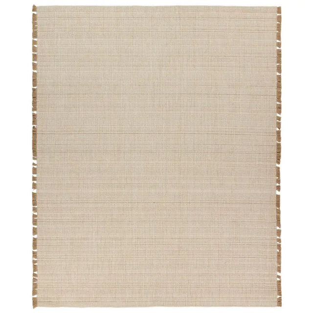 The Tienne collection draws inspiration from the natural world through rich texture and a wool, cotton, and jute make. Handloomed by artisans in India, these rugs exude a simple elegance suited for any modern home. The Bandera design's cream and beige colorway provides a neutral, grounding effect in contemporary spaces. The textural, ribbed pile and jute fringe add visual and tactile intrigue to medium and low traffic spaces of the home such as bedrooms, guestrooms, and formal living spaces.