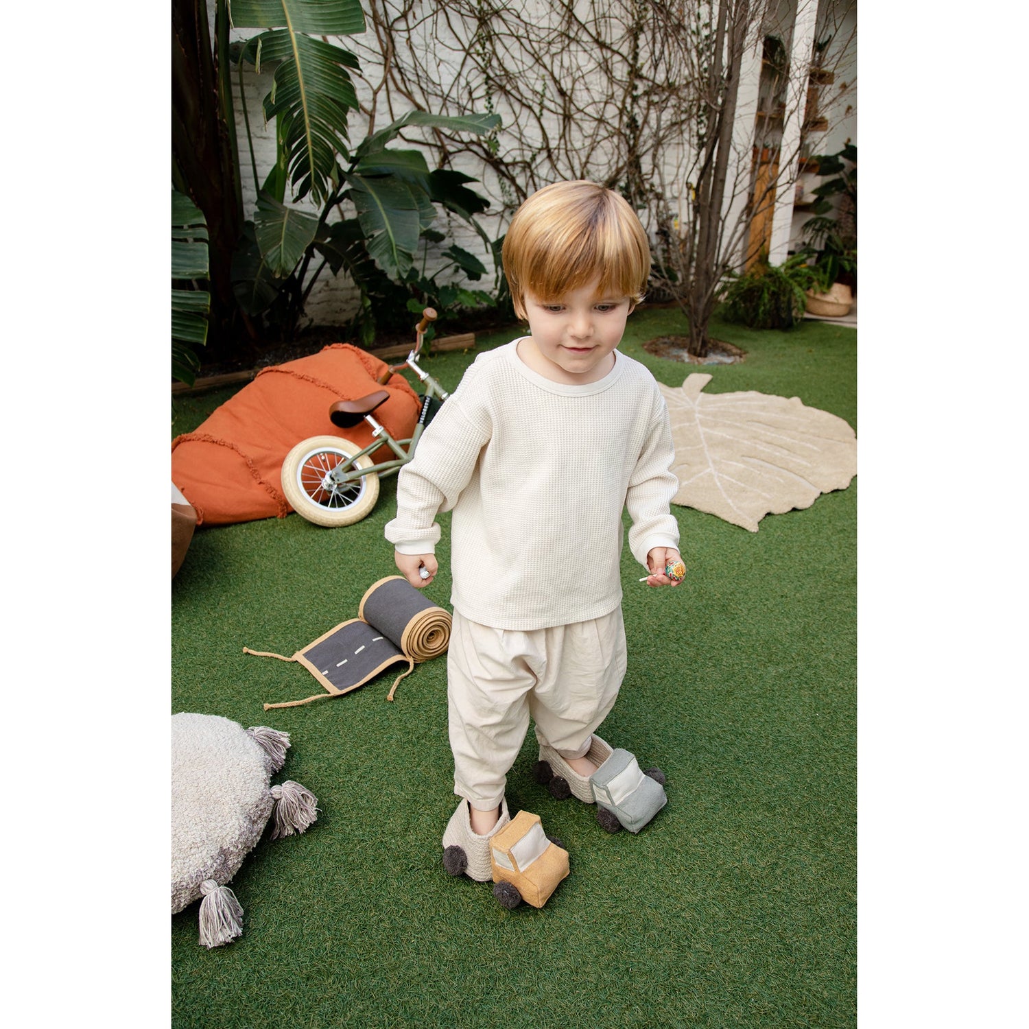 Complete with pom-pom wheels and a license plate that cleverly hints at the brand name, these adorable baskets are handcrafted from natural cotton and recycled fibers. Their soft yet sturdy structure makes them safe for little hands while offering a durable, eco-friendly storage solution for everyday use.