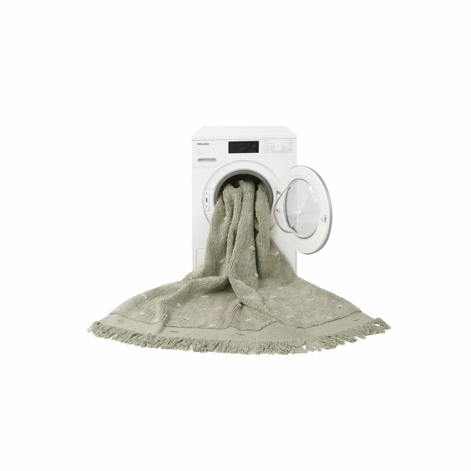 Bring nature indoors with the Woods Symphony Olive Washable Rug. This beautiful handwoven cotton area rug in a soothing olive green brings a touch of the outdoors to your home. Inspired by natural elements, this nature-inspired rug features a subtle botanical feel, making it a perfect boho botanical rug for any room.