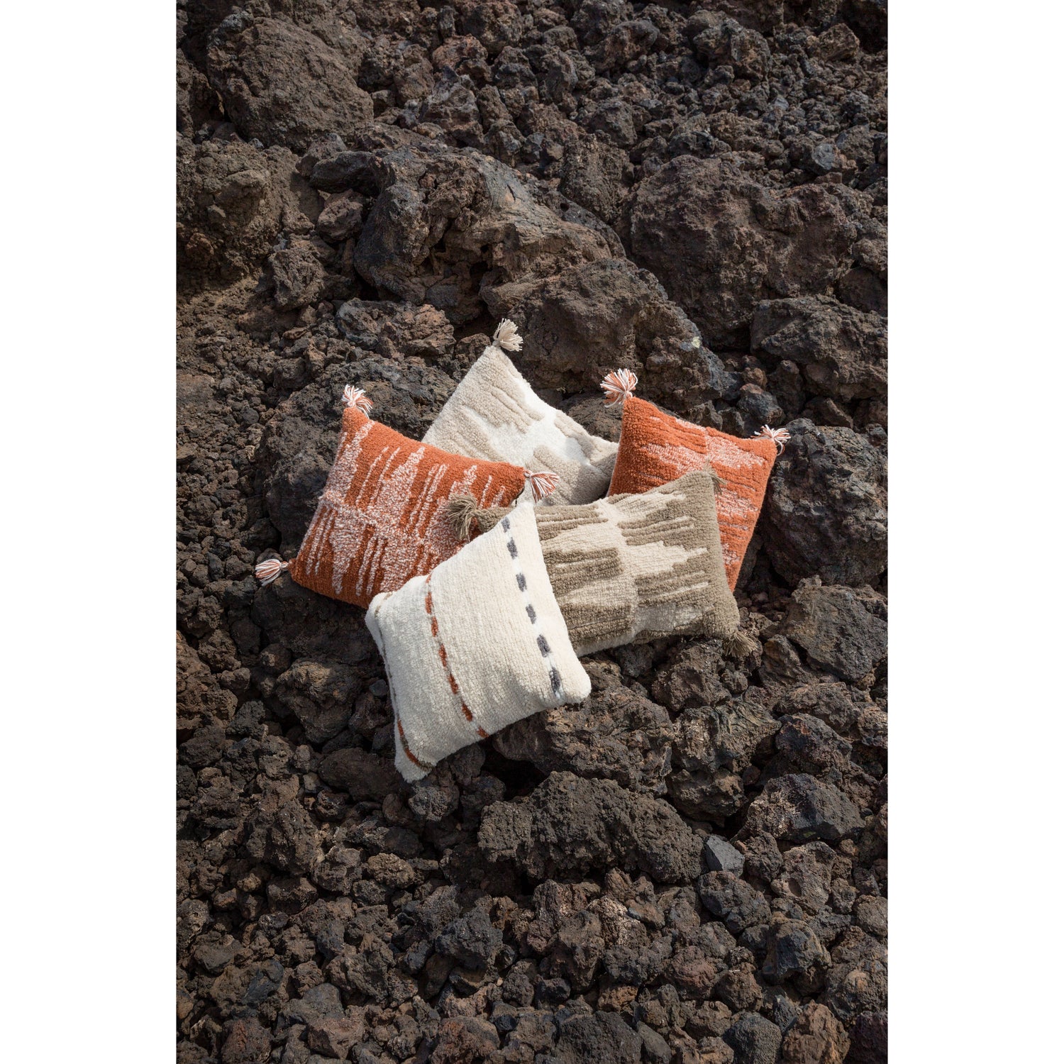 A versatile and cozy accent, this handwoven cushion blends soft wool pile in warm Sandstone tones with a contrasted ikat pattern on a natural cotton canvas base. Designed to pair seamlessly with the Nomad collection rugs, it brings boho-inspired texture to any living space.