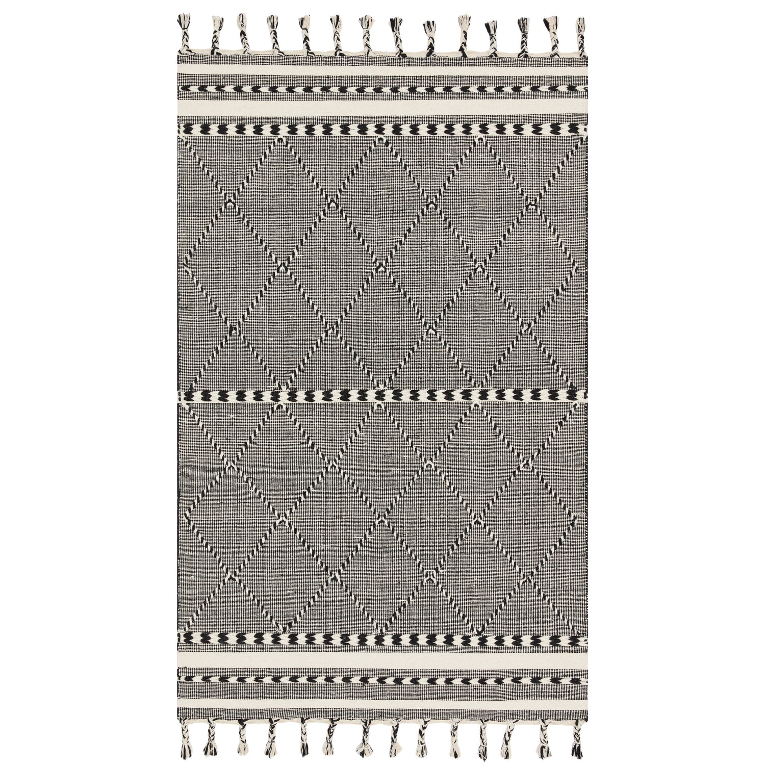 Bold geometry and handcrafted texture come together in a design that’s as artful as it is functional. This large area rug is hand loomed in India from a rich blend of wool, cotton, and other natural fibers, giving it a soft but sturdy feel underfoot. With a sleek black base interwoven with tonal accents, it works beautifully as a black area rug with multicolor dimension. Whether you’re anchoring a minimalist space or layering it into a more eclectic setting, this indoor area rug adds depth, contrast, and personality.