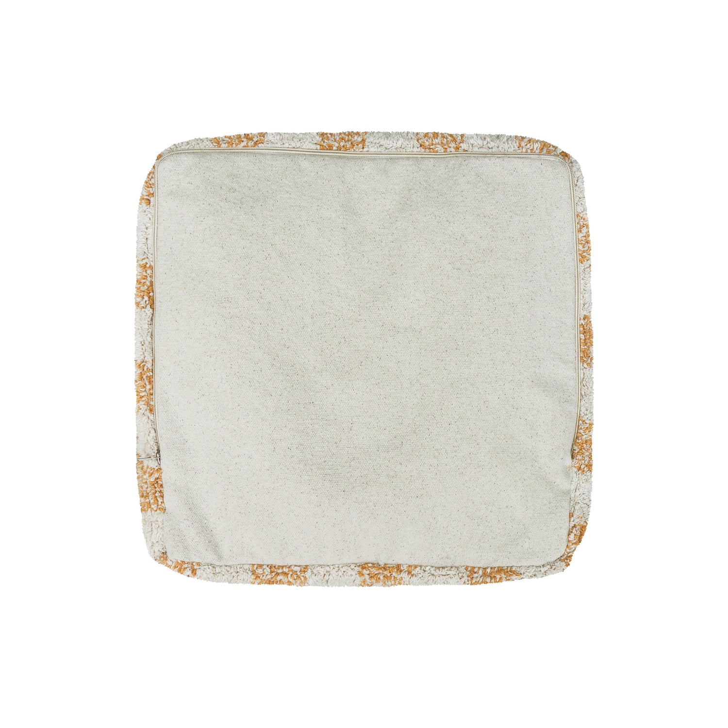 Designed in warm honey and natural tones, it brings a boho-chic aesthetic while complementing other pieces in the Little Chefs collection. The cover is crafted from recycled cotton canvas with a soft cotton pile, ensuring comfort and durability. Plus, the zipper at the bottom allows for easy removal of the filler, making it machine-washable for effortless maintenance.