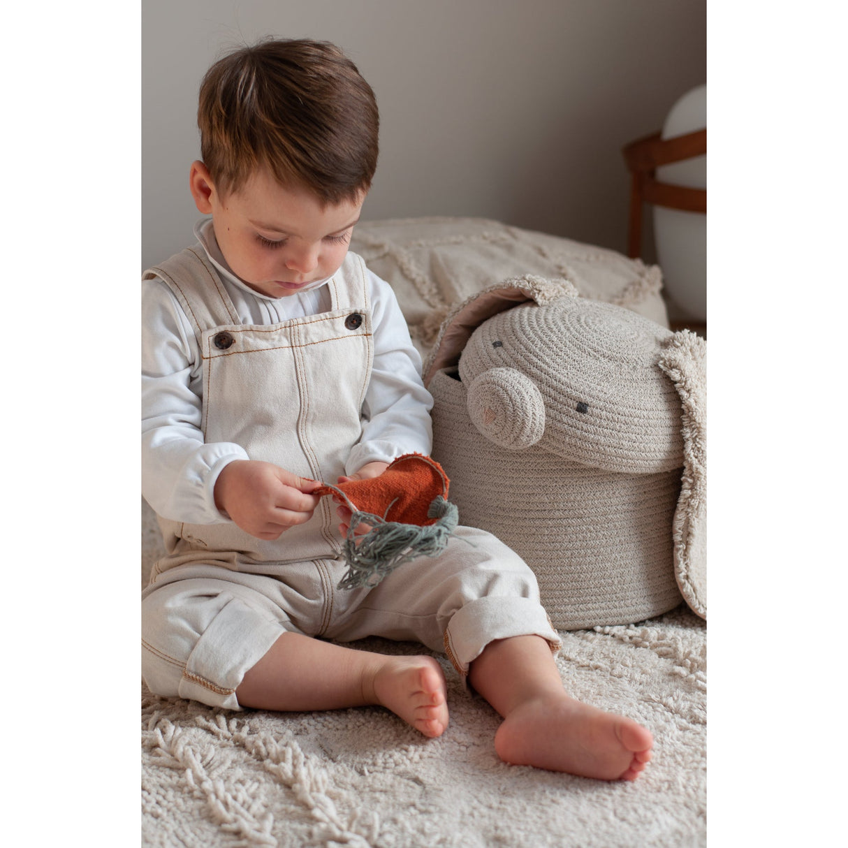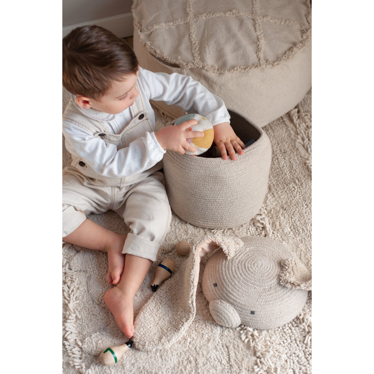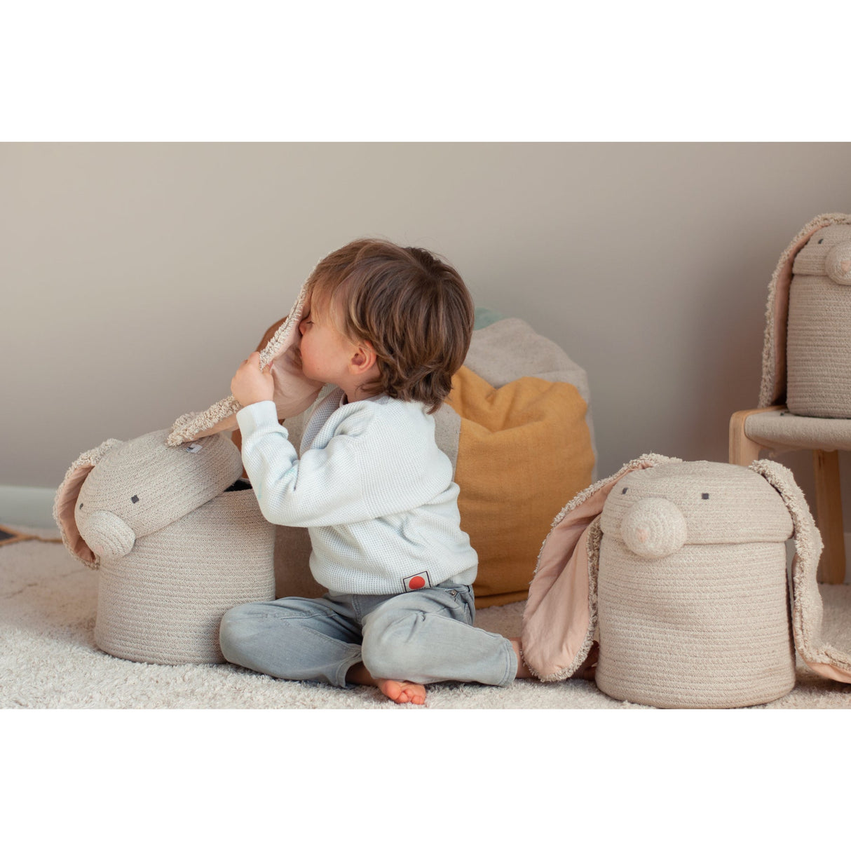 A charming and practical storage solution for children's spaces, this adorable rabbit-shaped basket brings both functionality and whimsy to any nursery or playroom. Handcrafted with braided cords made from recycled PET bottles blended with soft natural cotton, it offers an eco-friendly and durable option for organizing toys, books, or other small treasures.