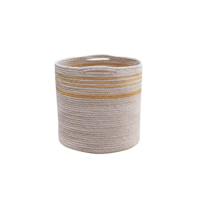 Crafted from natural braided cotton cords, the Lorena Canals Twin Amber Basket is a stylish and functional storage solution for any space. The striped design features contrasting amber-toned lines, adding a warm and earthy touch to its neutral base. Designed with practical handles, this versatile basket is perfect for storing toys, blankets, or everyday essentials while complementing modern, boho, or minimalist interiors.