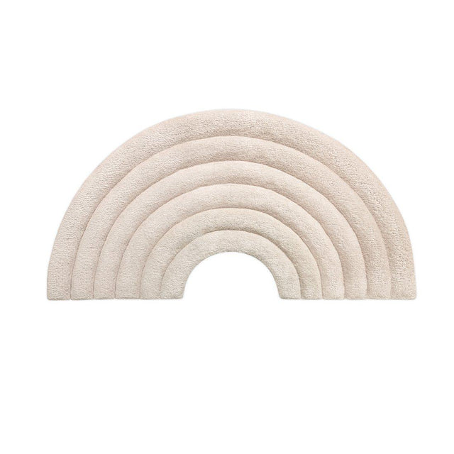Crafted from soft New Zealand wool, this beige rainbow-shaped rug adds a touch of playful style to any kids' bedroom, playroom or nursery. Its unique and cheerful design is sure to brighten smiles and lift spirits. Perfect for playtime, this rug is also durable enough to withstand everyday adventures. Add a touch of cozy magic to your child's space with this comfy and stylish rug—the perfect finishing touch for an awesomely designed room.