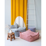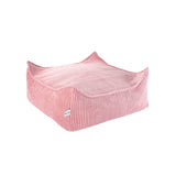 Sweeten your child's room with the Wigiwama Pink Mousse Square Ottoman. This versatile piece of kids furniture is wonderful for both playtime and relaxing. Designed specifically for kids, it's durable enough for imaginative play and adventurous activities. Made from OEKO-TEX certified and GRS® certified wide wale corduroy, it's a safe and environmentally friendly option. This playful ottoman offers comfort and will be a cherished addition to their childhood.