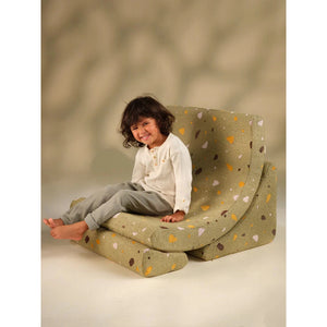 The Wigiwama Terrazzo Moss Moon Chair is the perfect blend of comfort and style, designed to make a statement in any room. This multifunctional piece is not just for sitting; it offers unparalleled comfort, ideal for unwinding after a long day at kindergarten or school, or while getting lost in a good book. With a unique design consisting of three separate pieces, it also offers a playful and engaging building experience. This chair is an ideal choice for those seeking comfort with a playful twist.