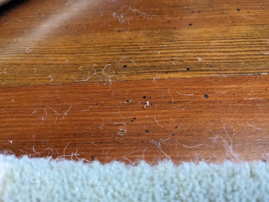 The rug looked great initially, and the shipment arrived within a week. It was high-pile and soft. However, within a few days, an incredible amount of white fiber dust accumulated on and around the carpet. I tried vacuuming every few days, and each time, the entire dust bin would fill up (starting with a clean barrel). The fiber also clings on clothing as seen in the picture of my black pants.