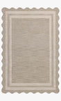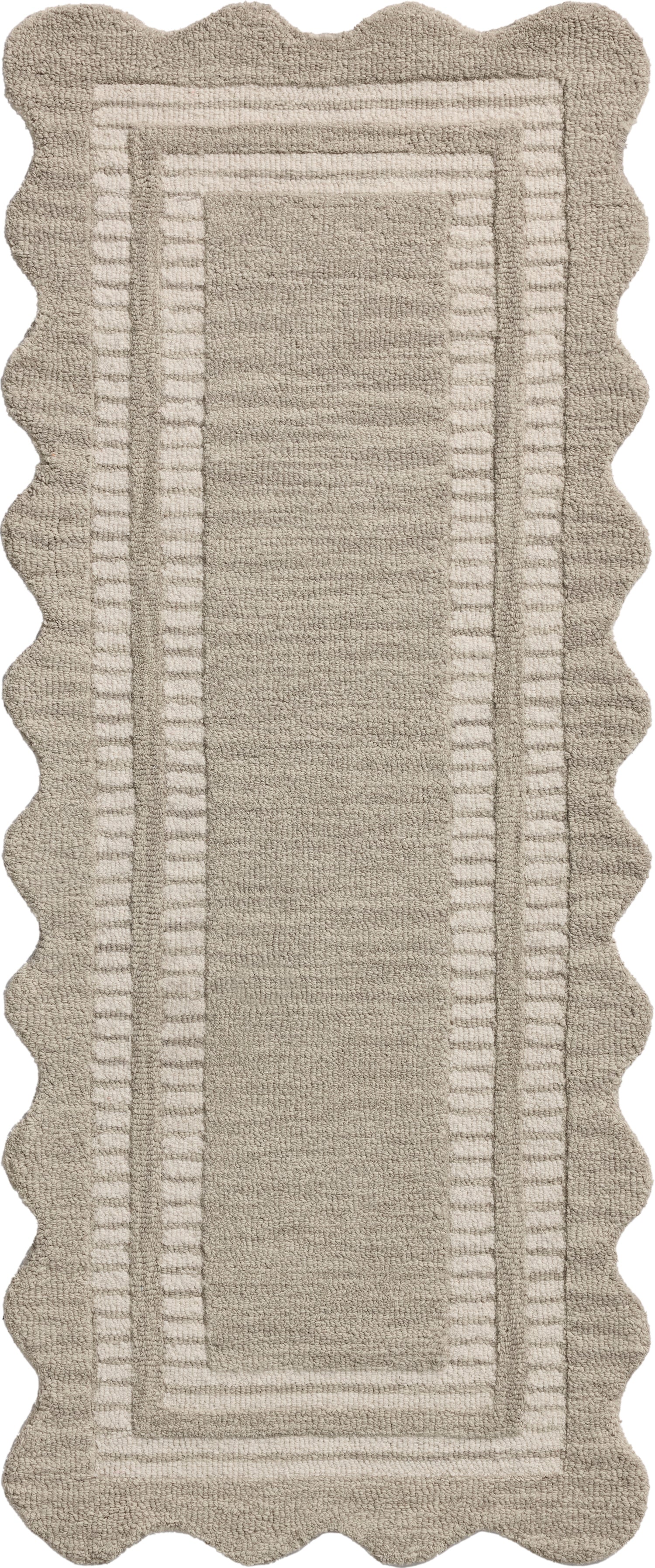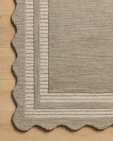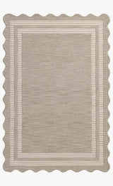 The Scottie Collection from Chris Loves Julia x Loloi is a hand-tufted wool area rug with a playful scalloped edge and lower-pile, striped border for a touch of structure. The rugs overall pile is thick and plush, available in easygoing earth tones and neutral colorways. This collection is hand-tufted of 100% wool in India and Goodweave-certified, ensuring our commitment to ethical production and the support of weavers communities. Some shedding is expected and a natural characteristic of wool rugs; we recommend vacuuming frequently without a beater bar.