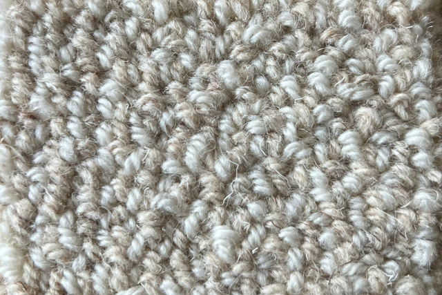 A two-tone loop pile uses a light and dark yarn blended to create a subtle, random grid-like pattern that adds depth and visual interest to the surface.